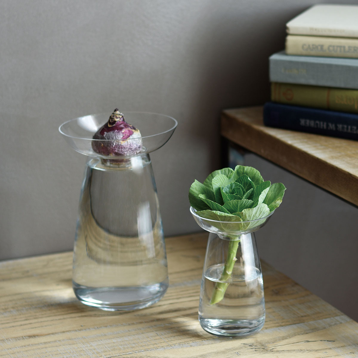 Den består av 2 delar, platta med hål och vasen, vilket gör det enkelt att ta hand om växter. Plattan stödjer de växande bladen som örter. Den är också perfekt formad för lökar som hyacint och kärnor som avokado. Du kan välja att njuta av den som en blomvas utan platta. Bli inspirerad att börja ett liv med växter.