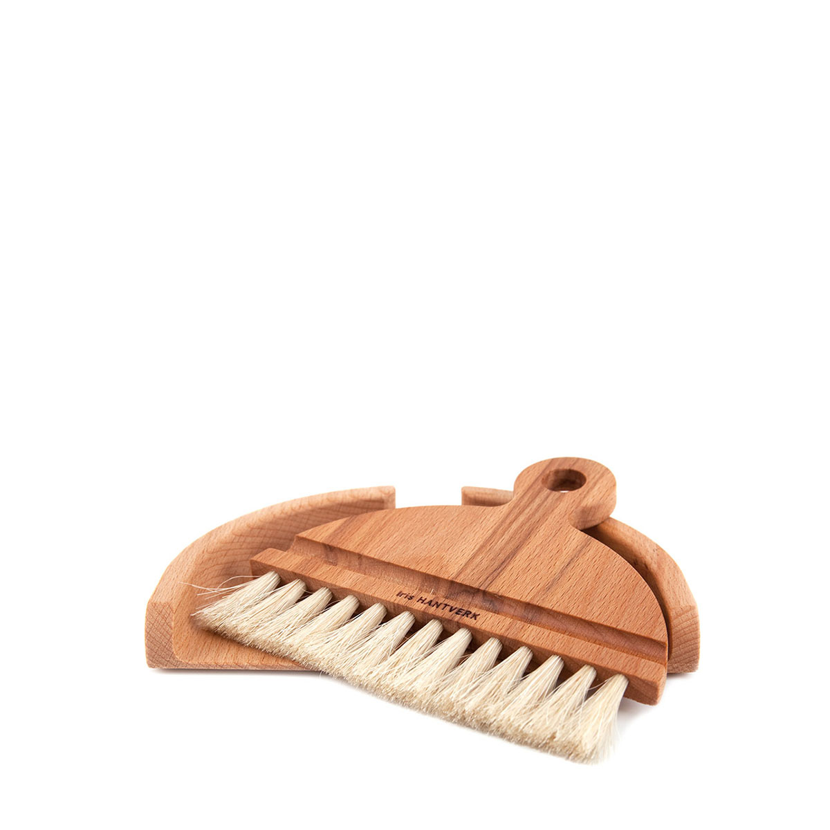 Sopa enkelt bort smulor från bordet med detta smidiga bordsborstset. Ett både vackert och funktionellt set i oljad bok och med borst av tagel, handdragen.