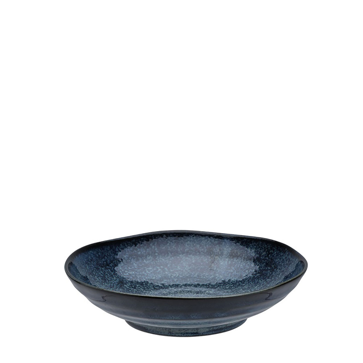 Låg skål som är vacker att ställa fram på matbordet. Kombinera med andra delar i serien Cobalt Blue. Högblank glasyr i blått och grått.