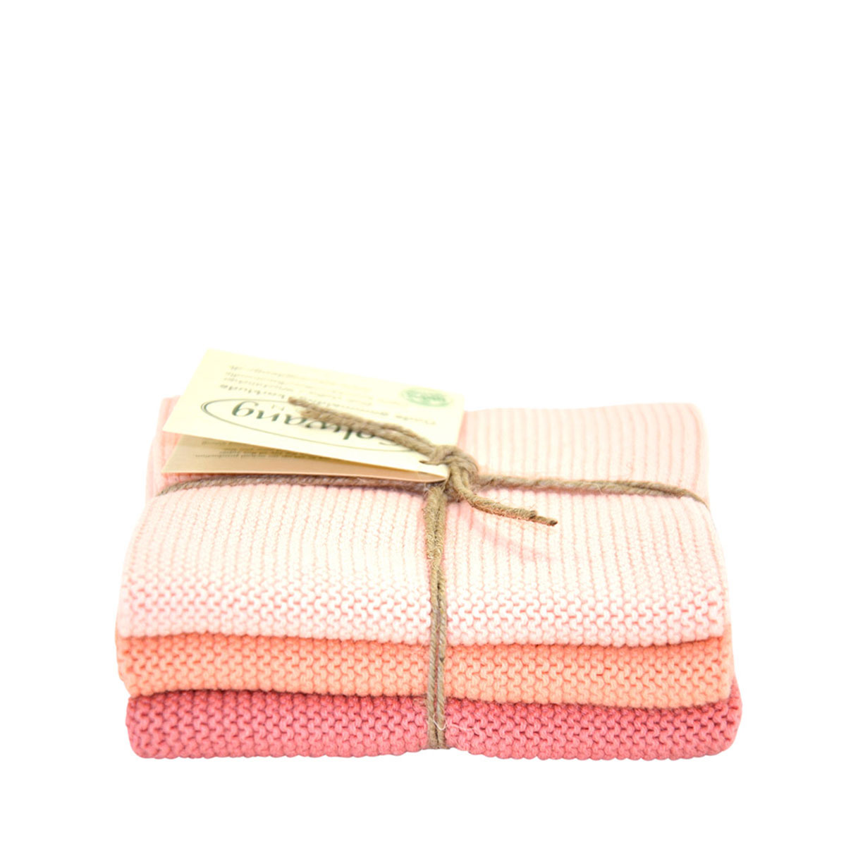 3 stycken stickade disktrasor i olika nyanser av korall. Rätstickade för att ge optimal sugförmåga.