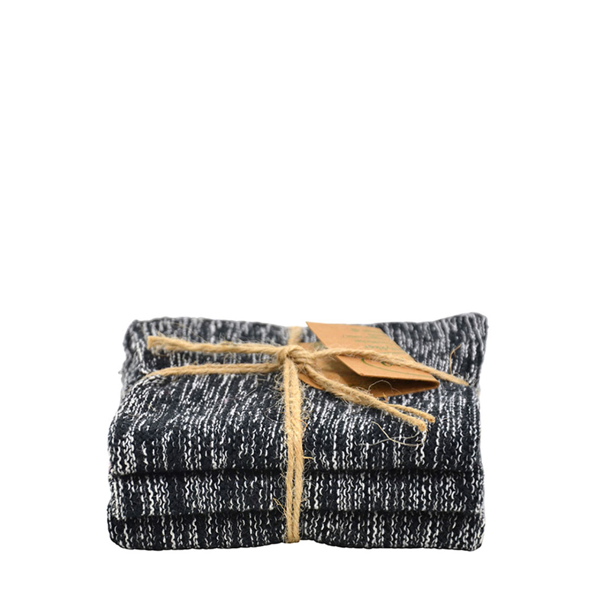 3 stycken stickade disktrasor i svart/natur mix. Rätstickade för att ge optimal sugförmåga.