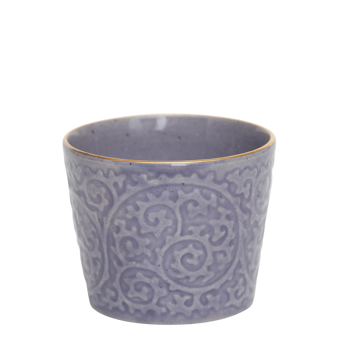 Enkel soba kopp med traditionellt arabeskmönster. Tar tillvara den rustika strukturen i materialet och avslutas snyggt med glasering.