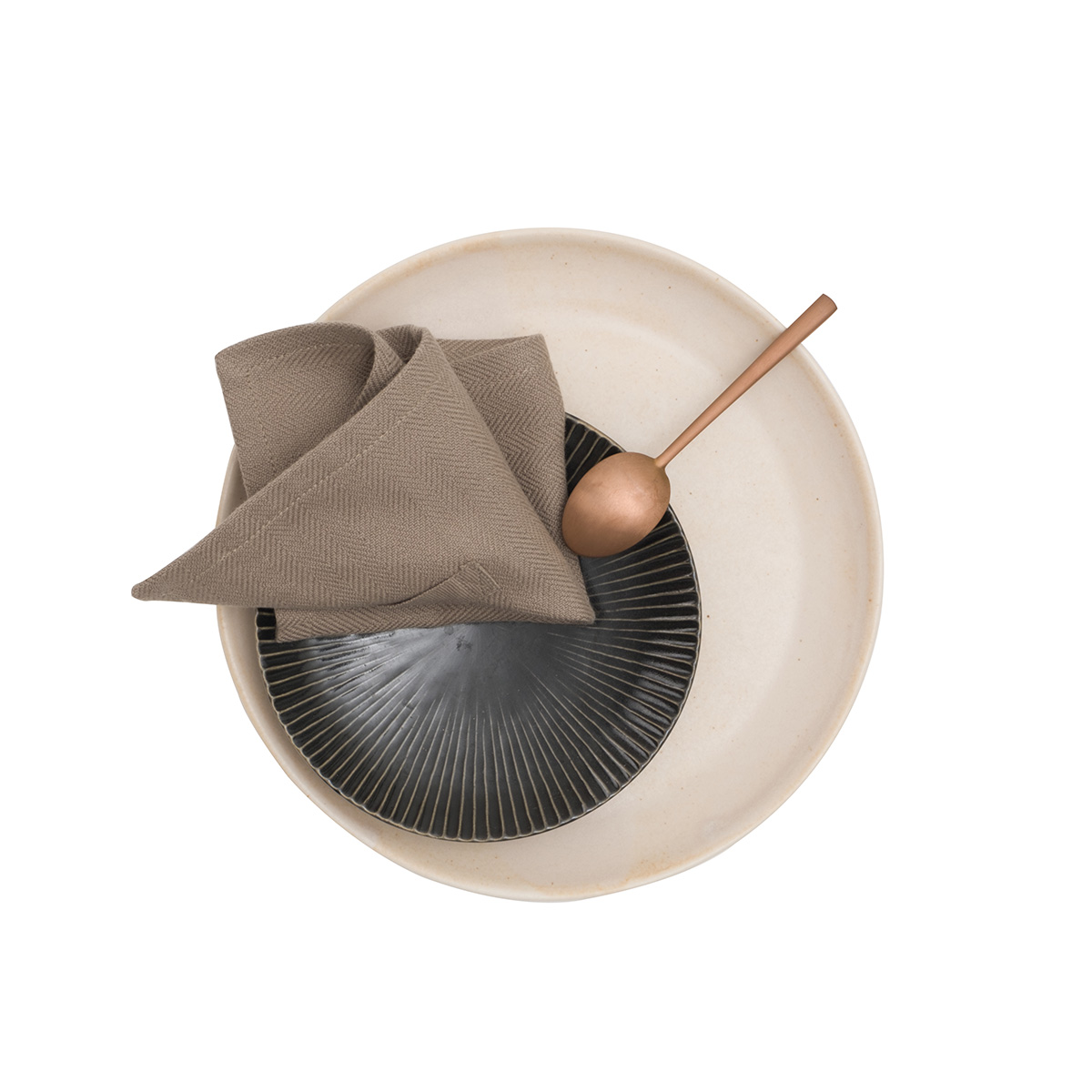 Med litet band som dekoration. Stick in en liten blomma när du vill duka extra festligt.