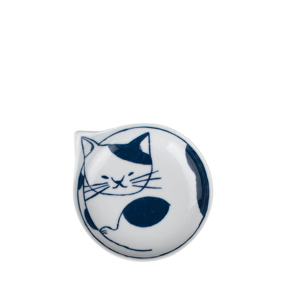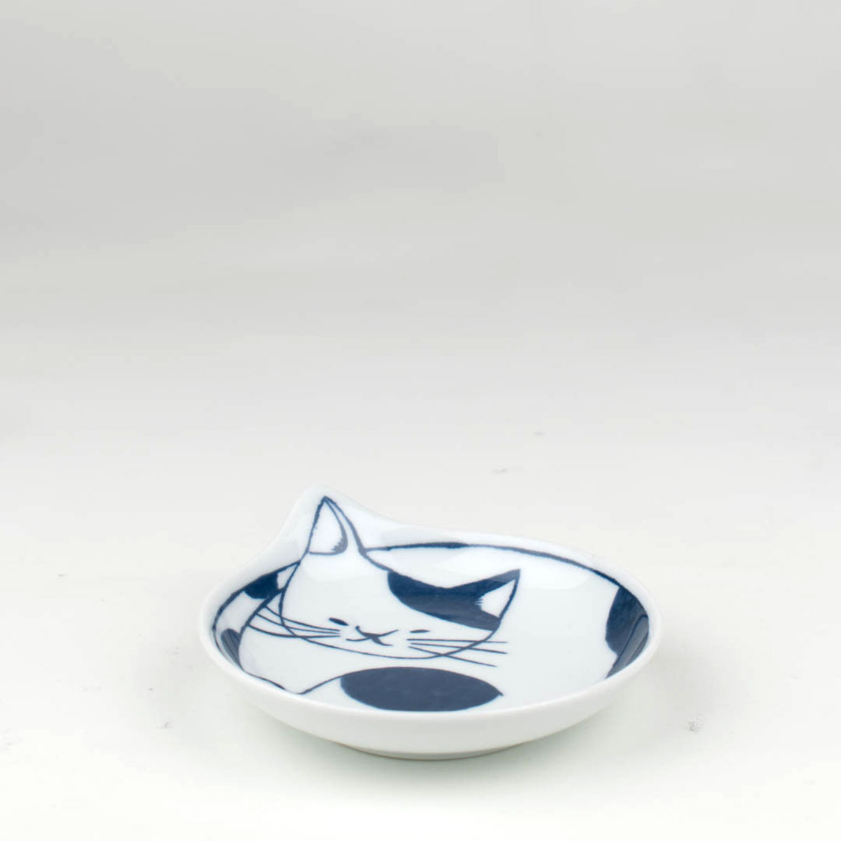 Sött fat med katt där örat sticker ut över kanten. Till dig som älskar katter och japansk keramik.