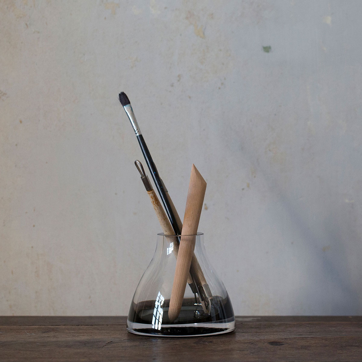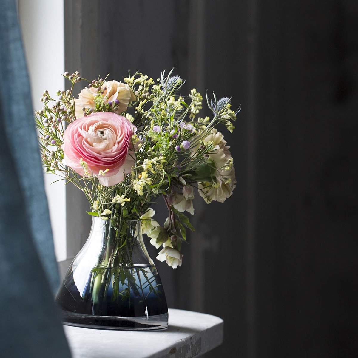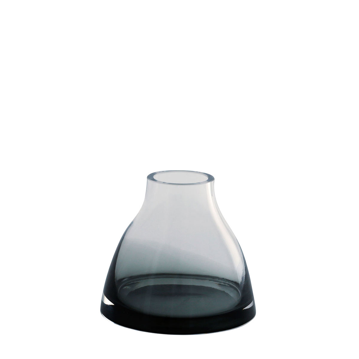 I denna munblåsta glasvas blandas klart och färgat glas. Det färgade glaset i botten döljer vattnet och låter stjälkarna försvinna gradvis. Vasens form och vikt gör att den står stabilt.