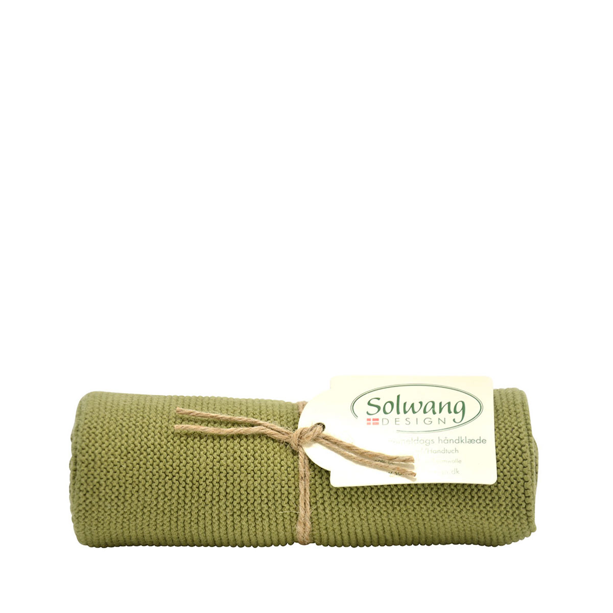 Stickad handduk i färgen mörk oliv. Handduken är rätstickade för att ge optimal sugförmåga.