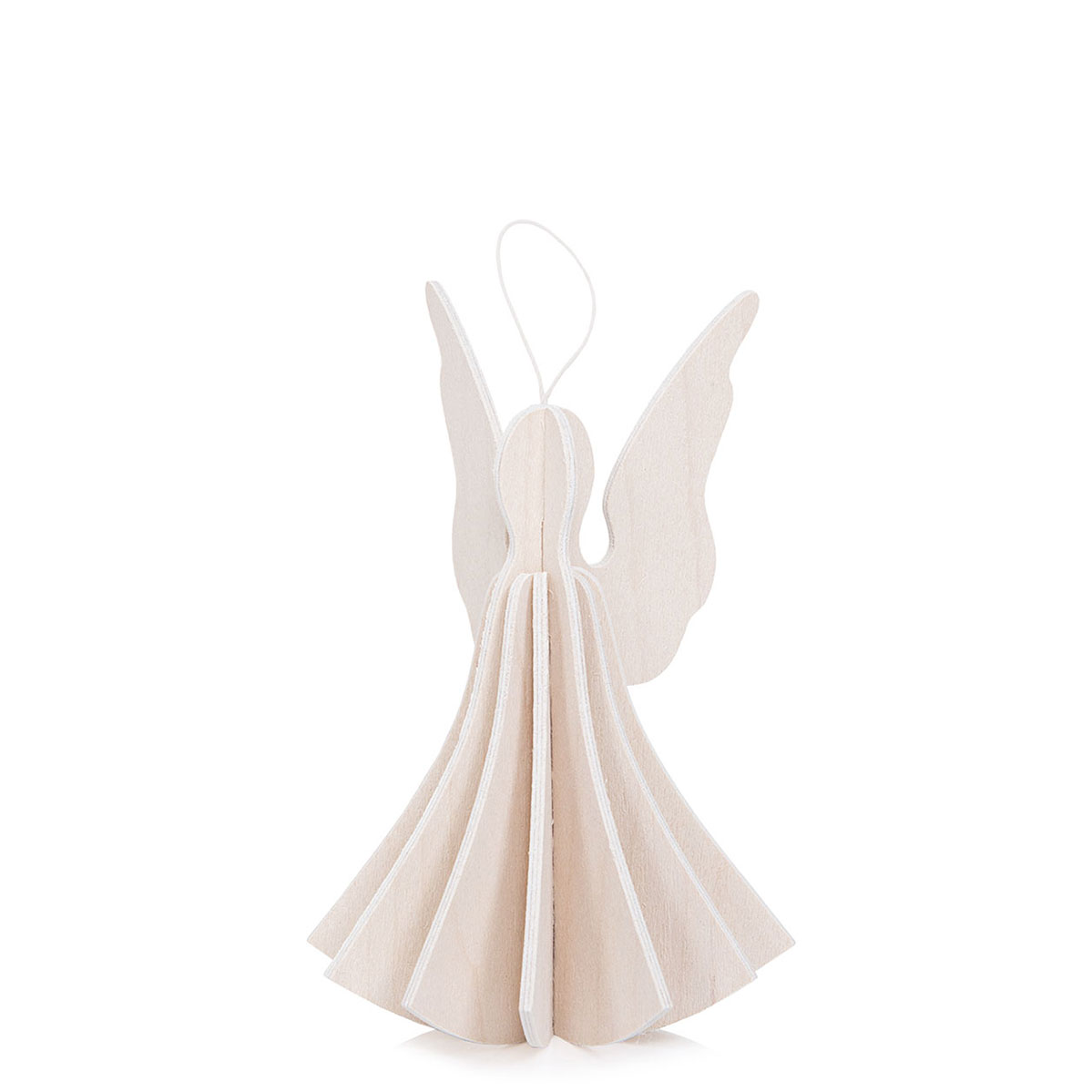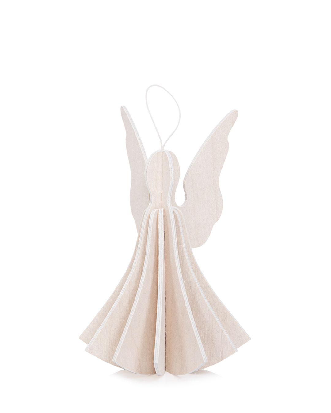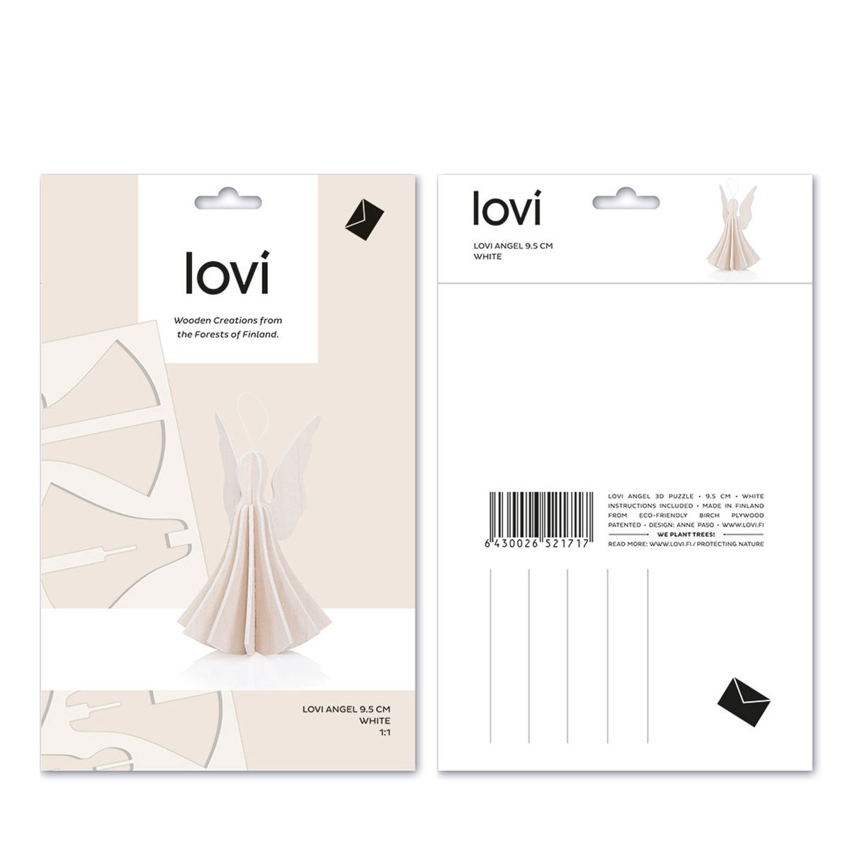 Lovi Angel är en bärare av ljus och glädje. Den skapar en fridfull aura som påminner dig om kärlek och människor nära dig. Ängelklänningen är klockformad och dess vackert designade vingar är något upphöjda. Denna typ av form är tidlös och trä som material skapar en traditionell atmosfär.