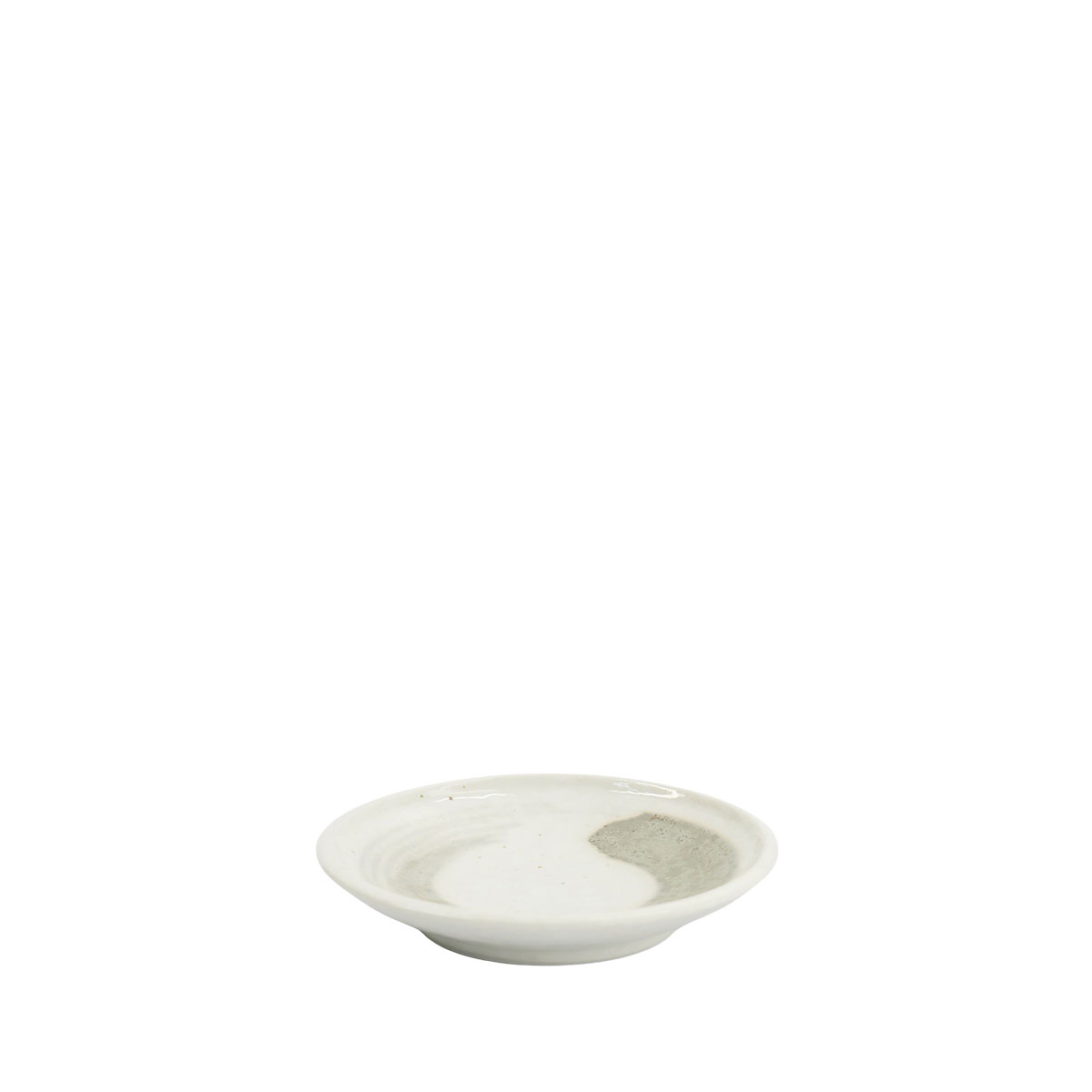Liten japansk tallrik i vitt med beige penseldrag.