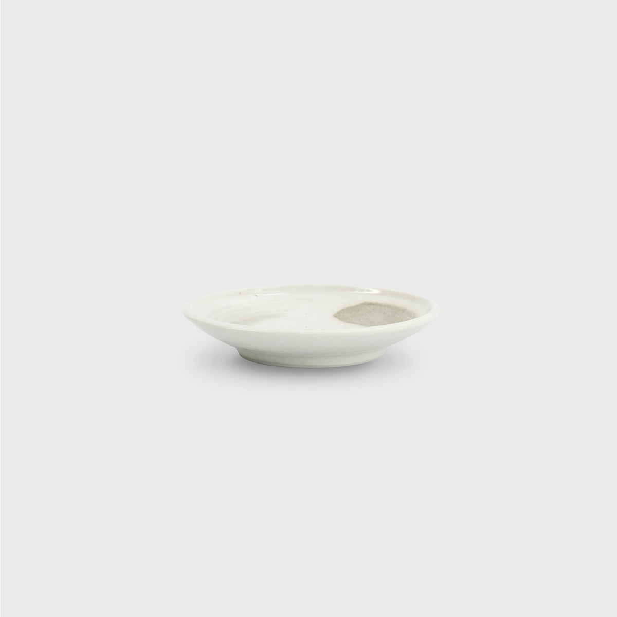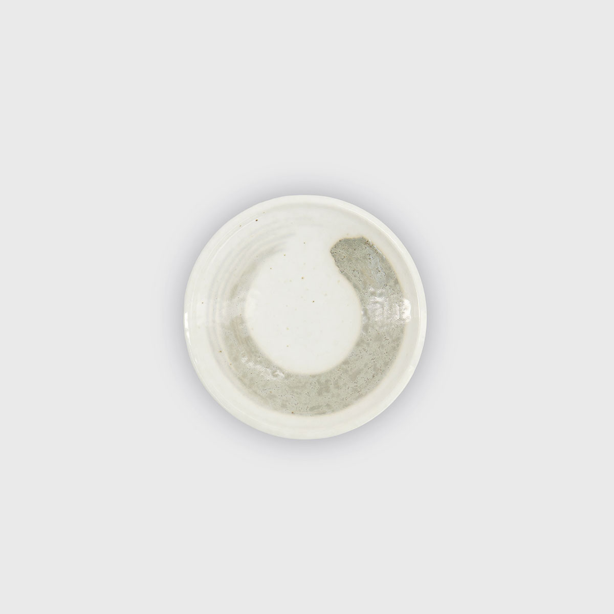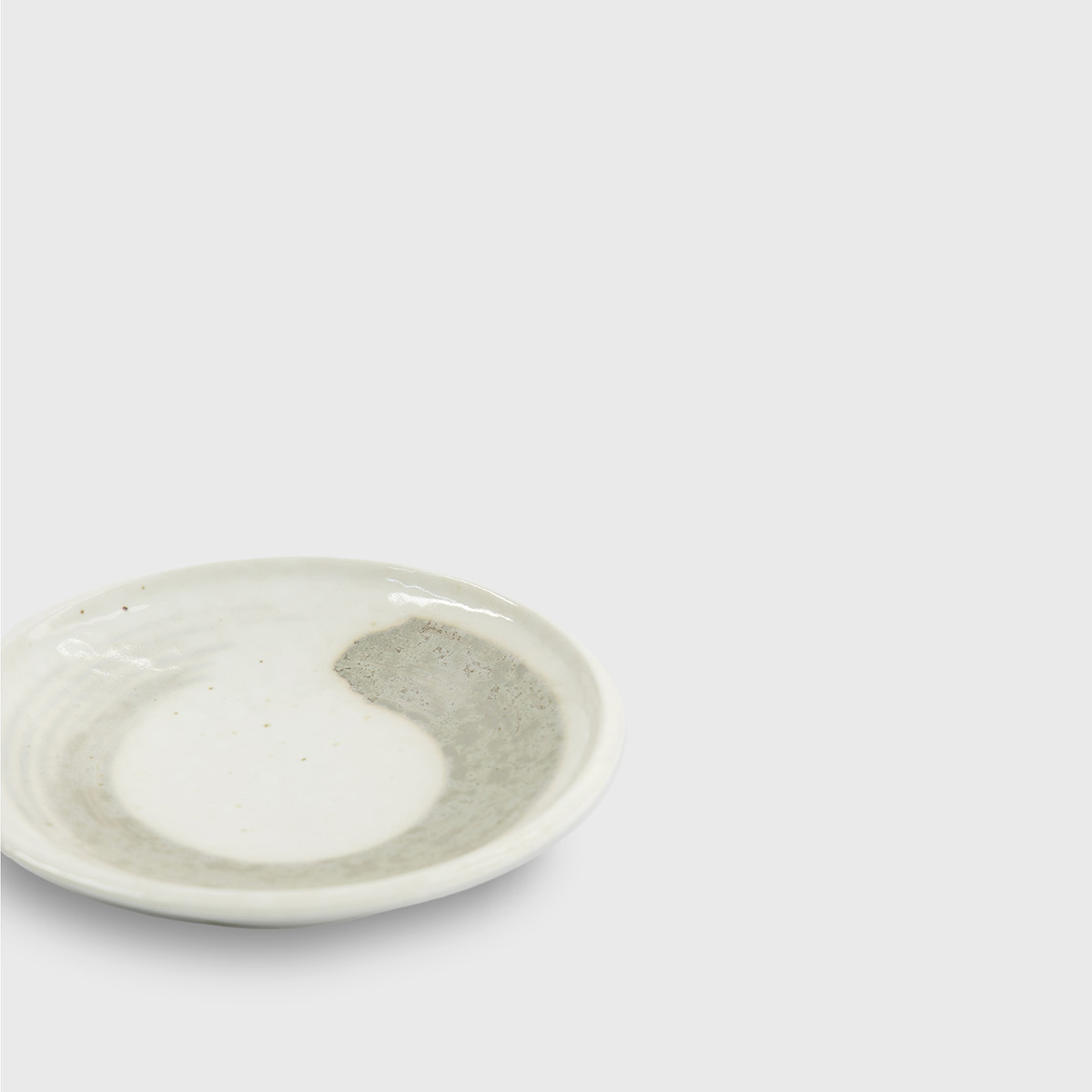 Stilren liten tallrik inspirerad av japansk minimalism och hantverkstradition. Den mjuka, vita basen kompletteras av penseldrag i varm beige ton, vilket ger varje tallrik ett levande och unikt uttryck.