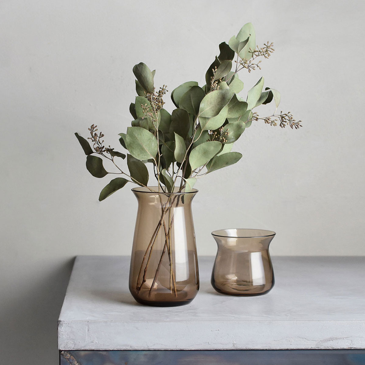 Glasvasen kan även användas utan platta för att visa upp en liten bukett.
