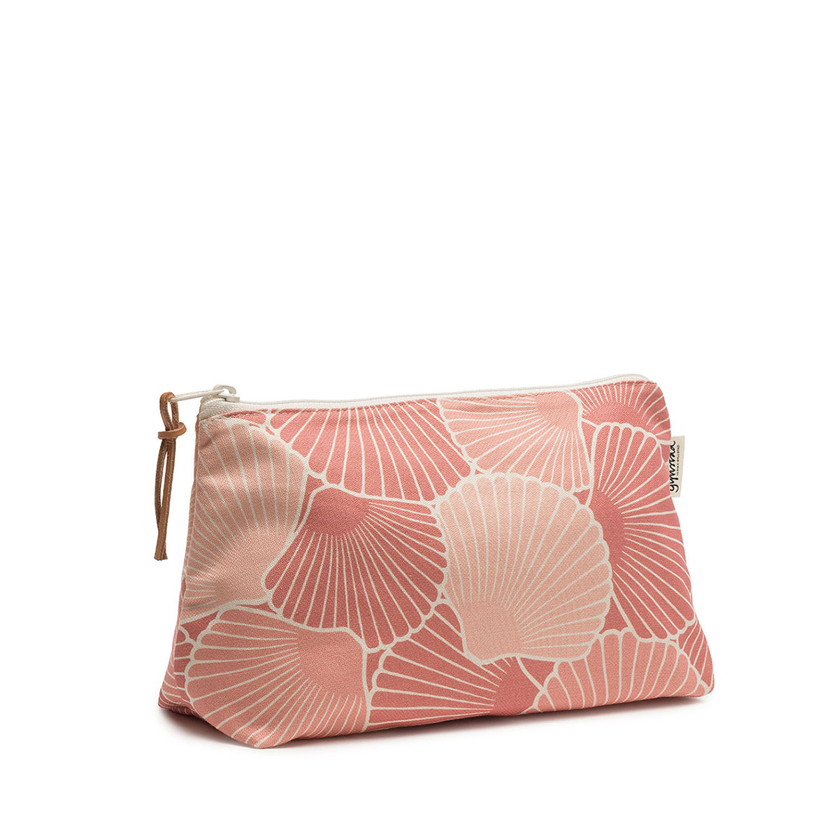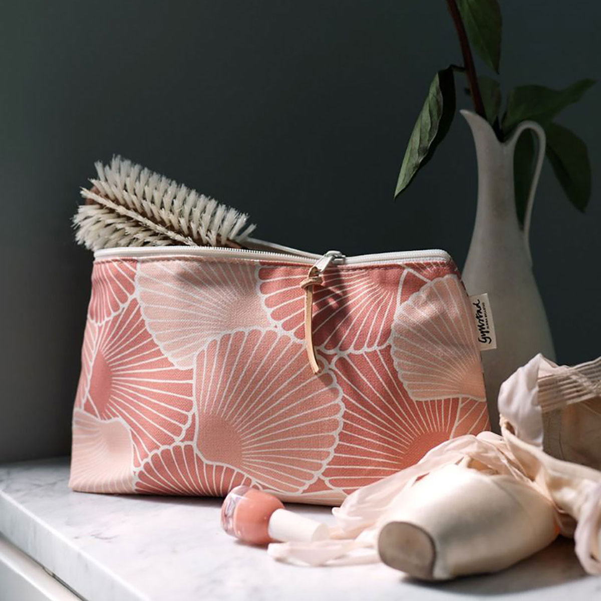 Tillverkad i ekologisk GOTS-cerfiierad bomullsväv med fin struktur. Fodrad med stadigt foder. Dragkedja med liten rem i naturgarvat läder.
