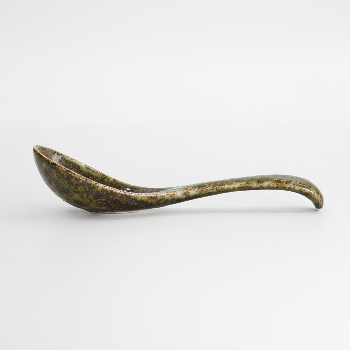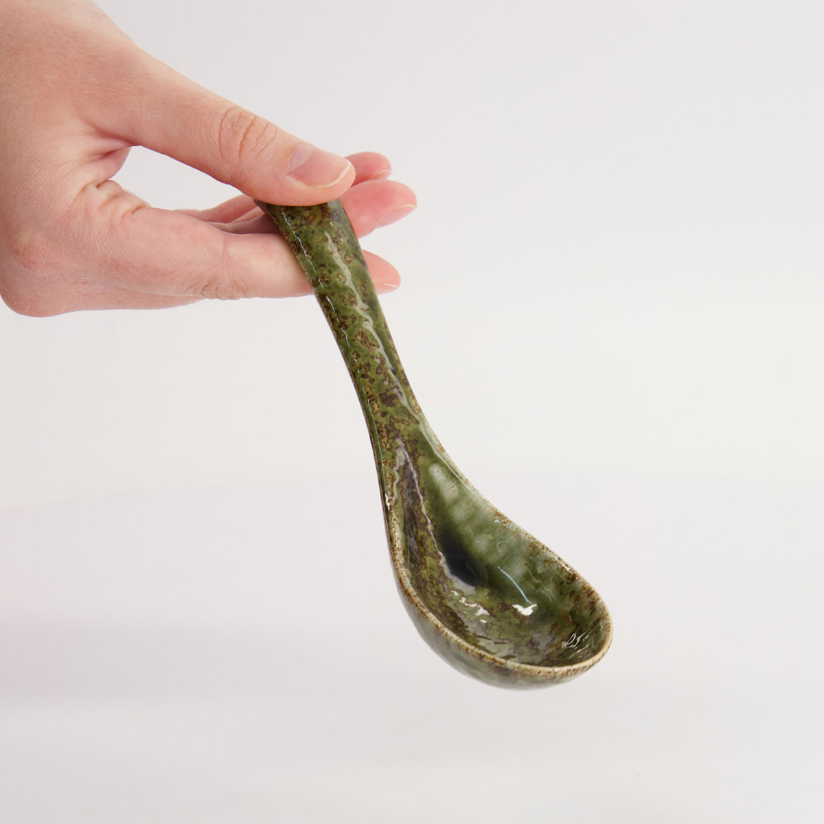 En klassisk japansk renge sked i en grön nyans som för tankarna till naturens lugn. Den djupa formen gör den idealisk för soppor, ramen och nudelrätter. Blir samtidigt  ett vackert inslag i dukningen.
