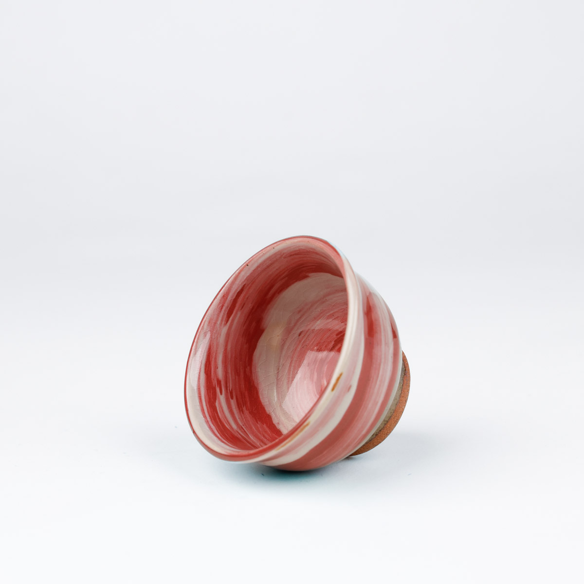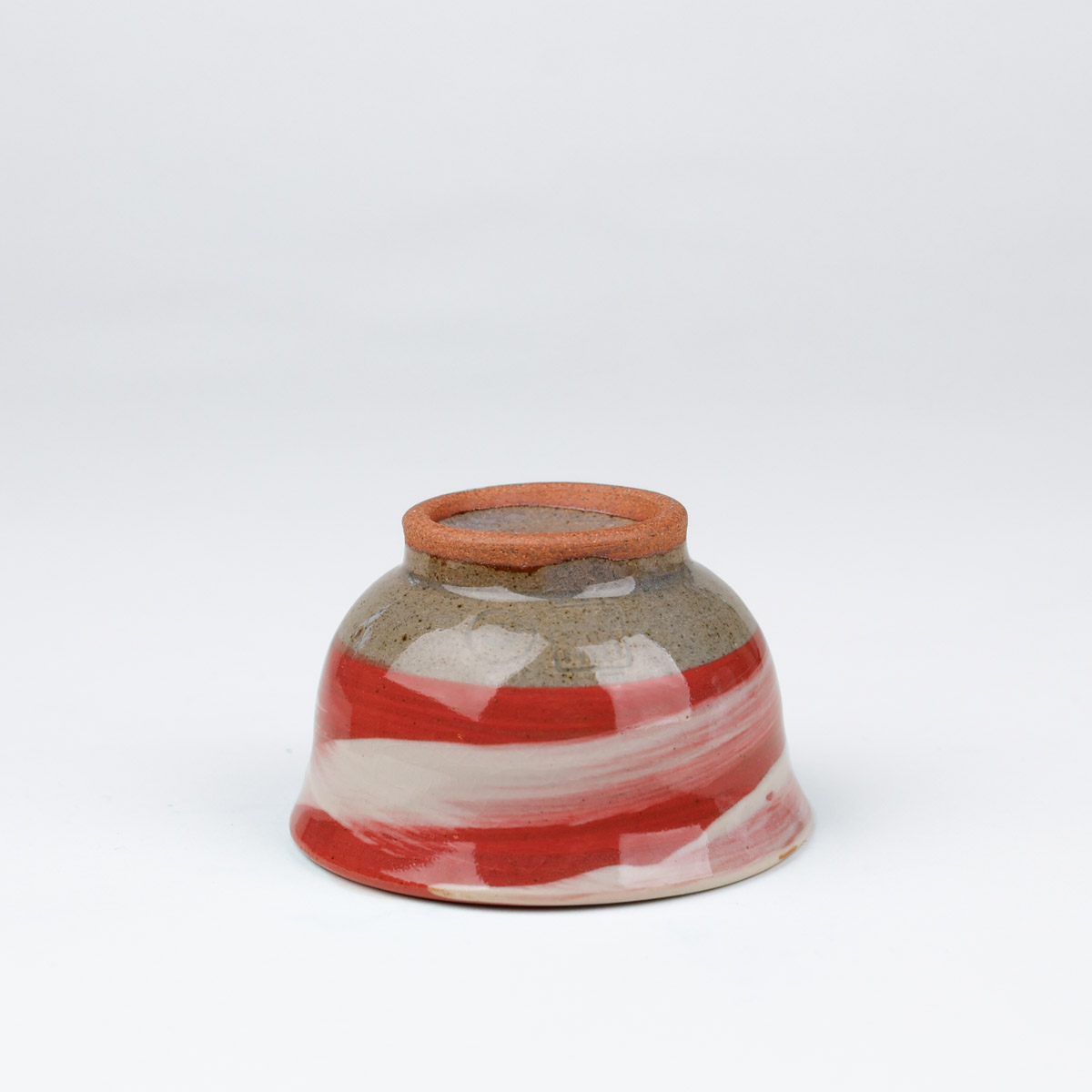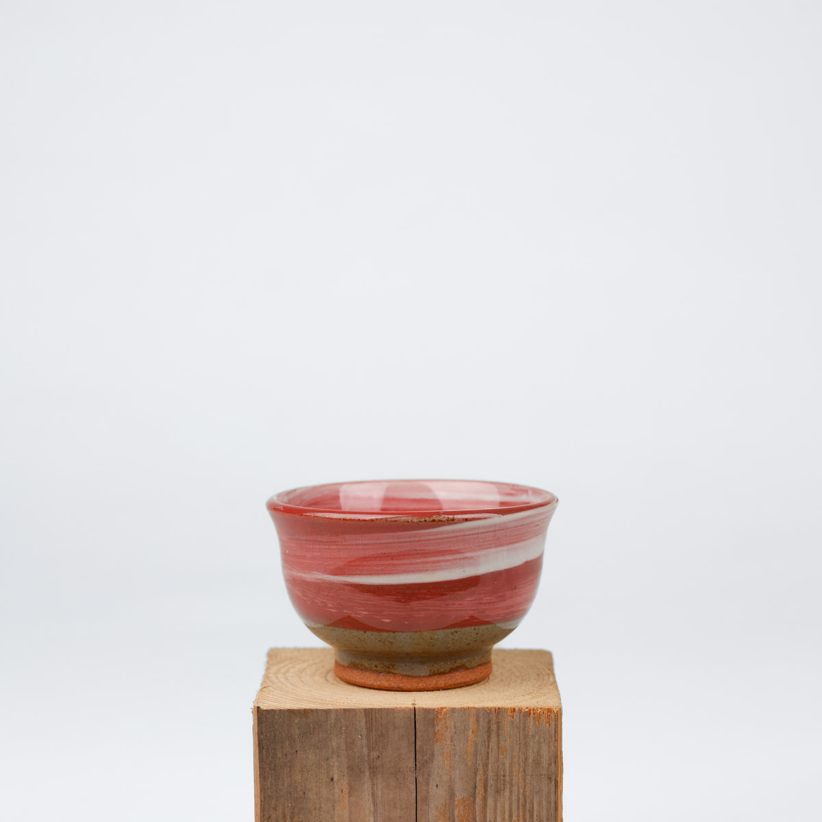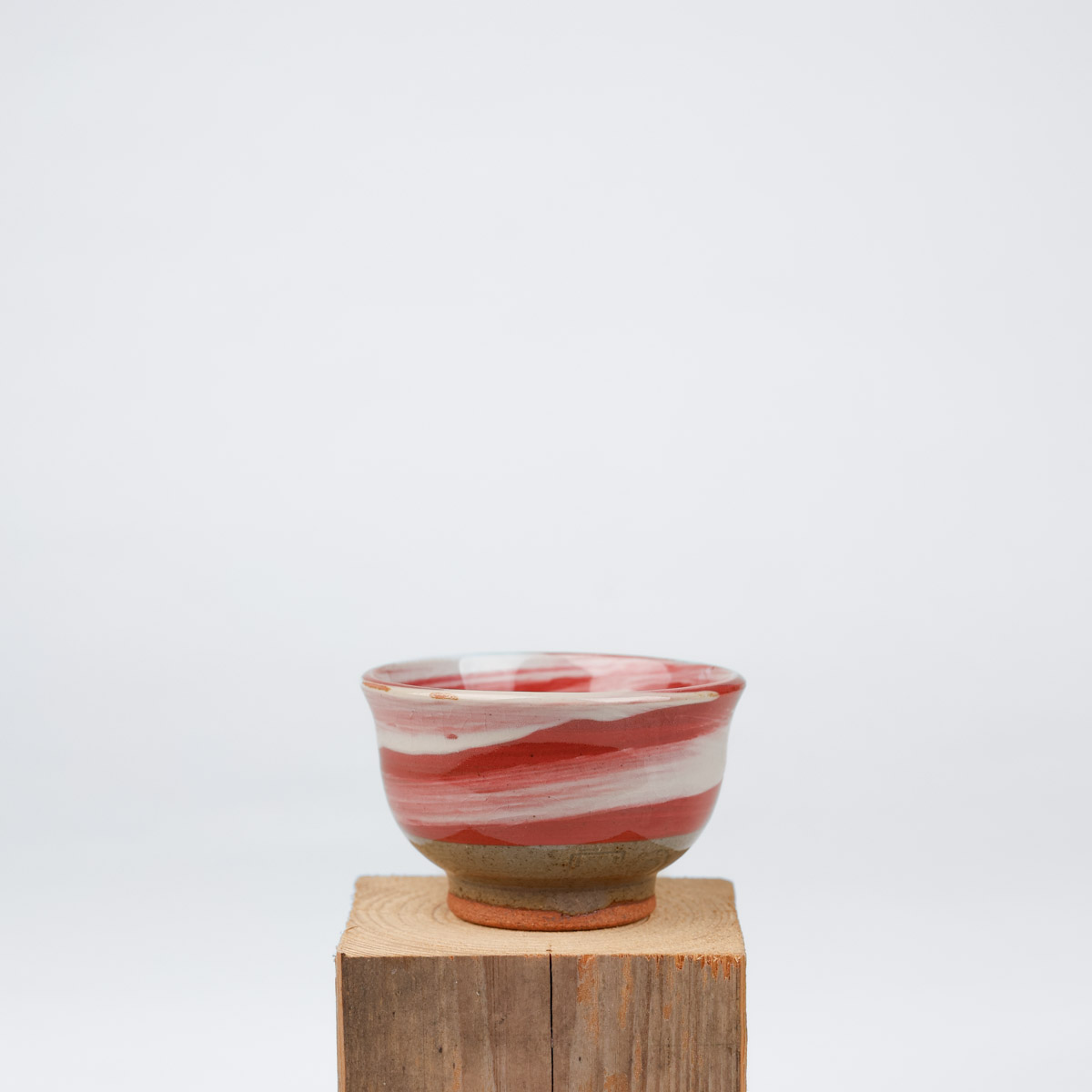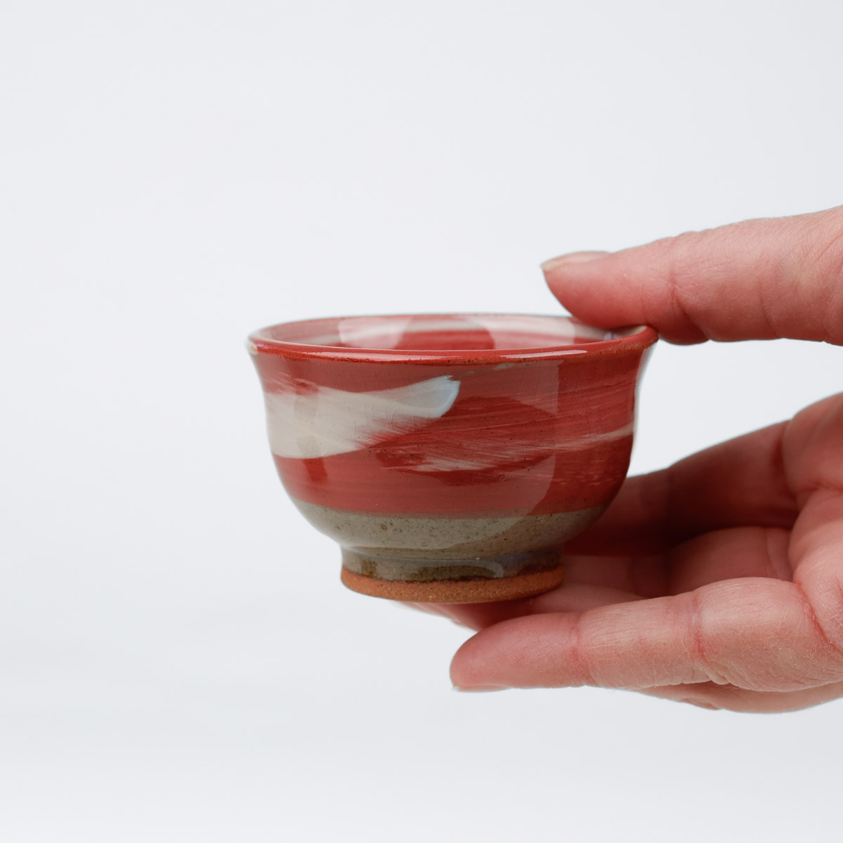 Japansk handgjord sake kopp med vacker glasyr i rött och vitt. Passar även bra som espresso kopp eller liten tekopp.