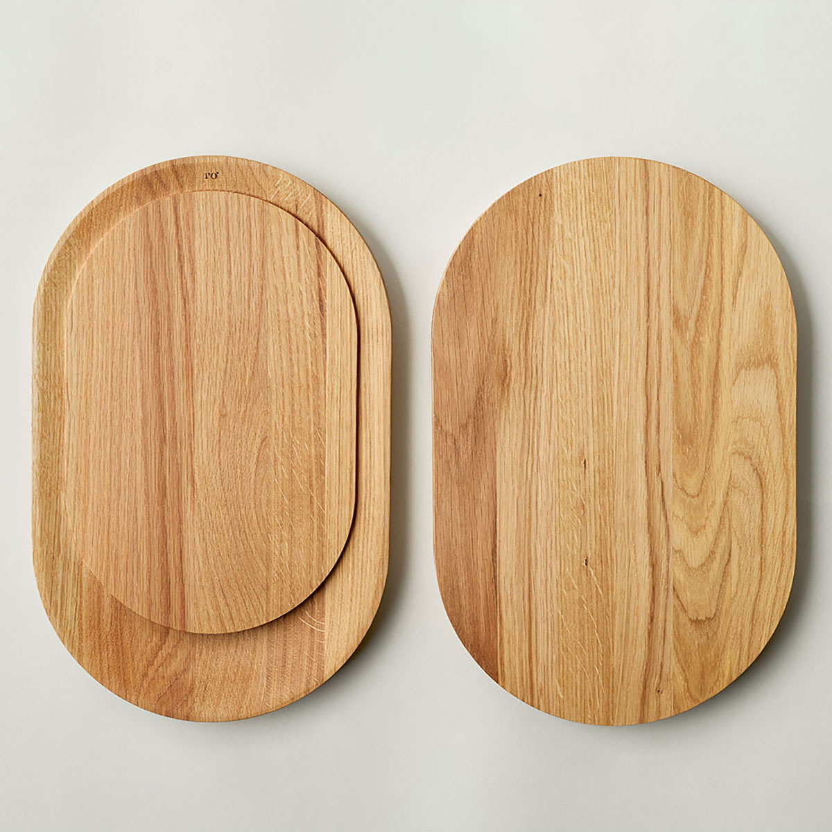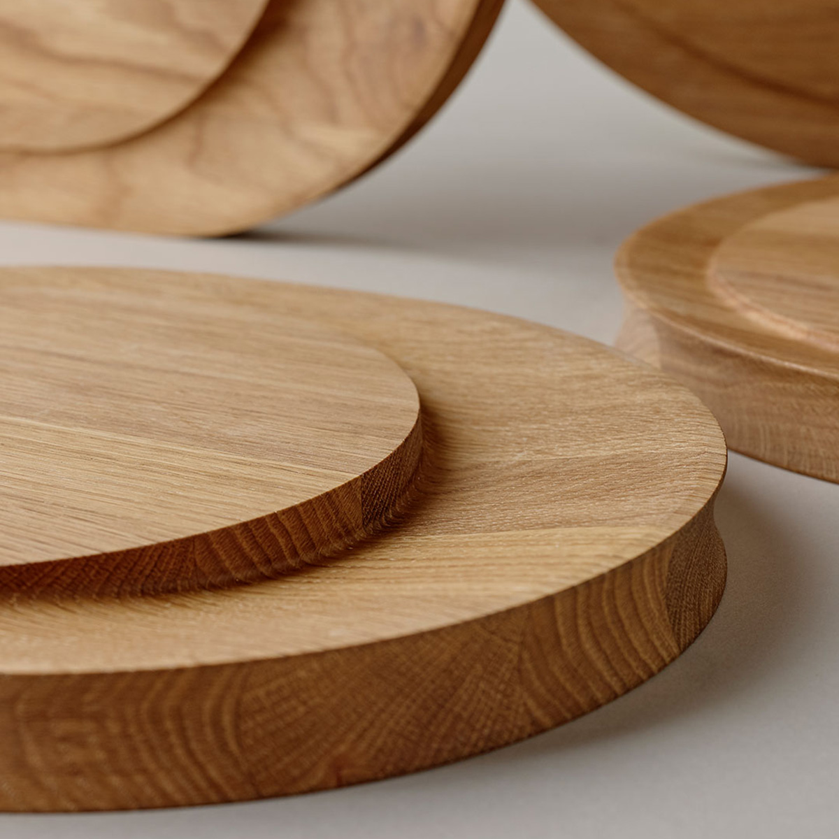 Oak Board är en serie skär- och serveringsbrädor av massiv, FSC-certifierad ek. Designen är resultatet av en lekfull session med geometriska former: cirklar i cirklar och olika vinklar och kurvor som skapar det unika uttrycket och den funktionella formen.
