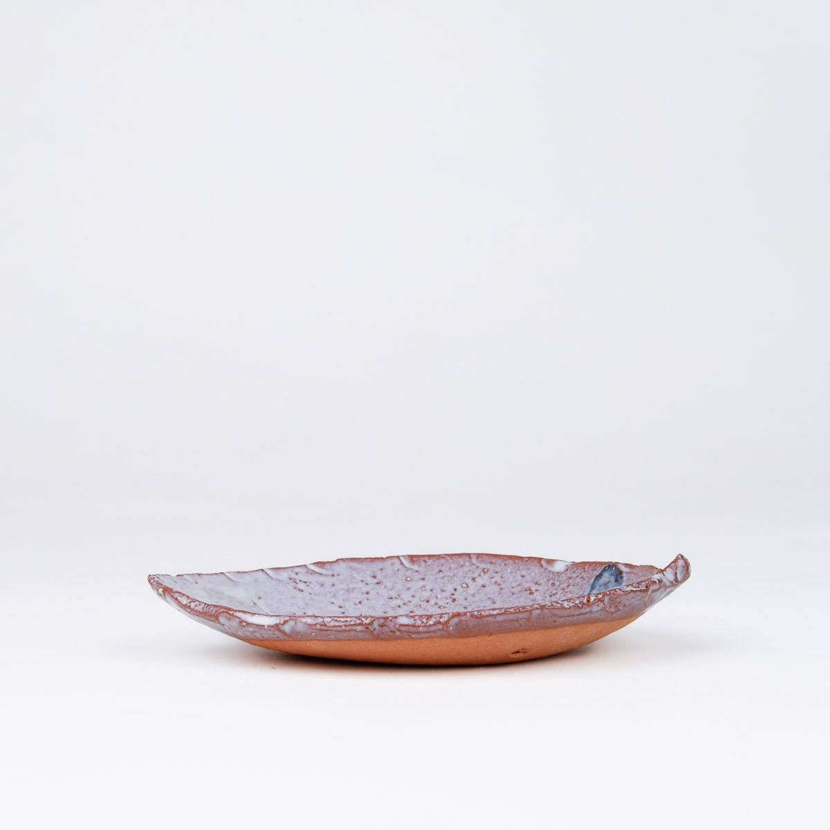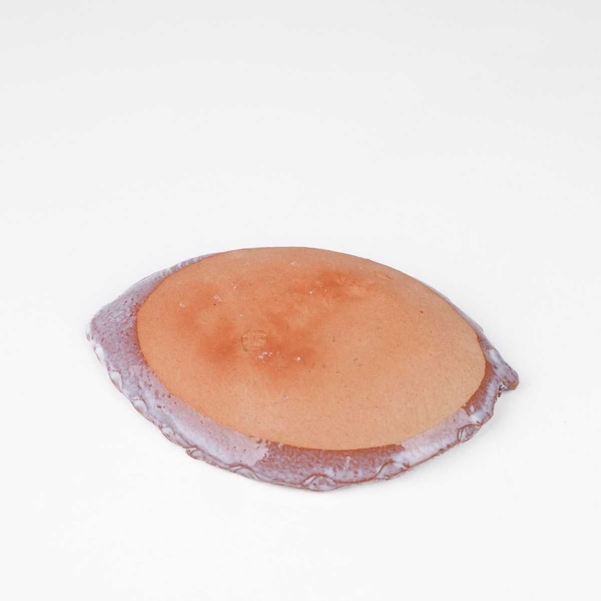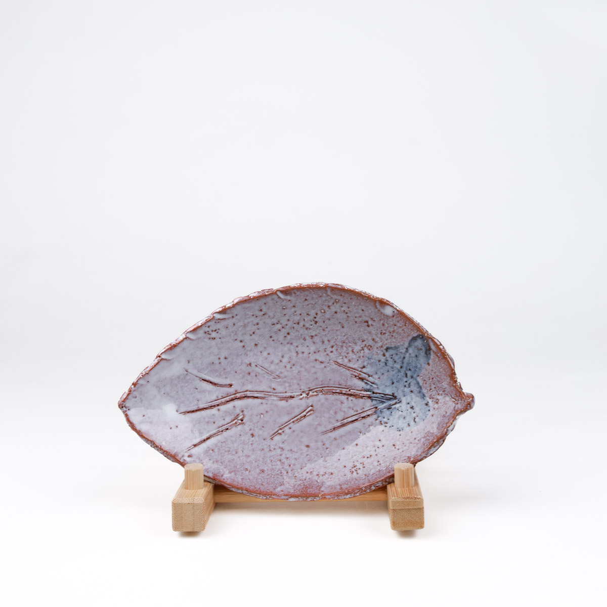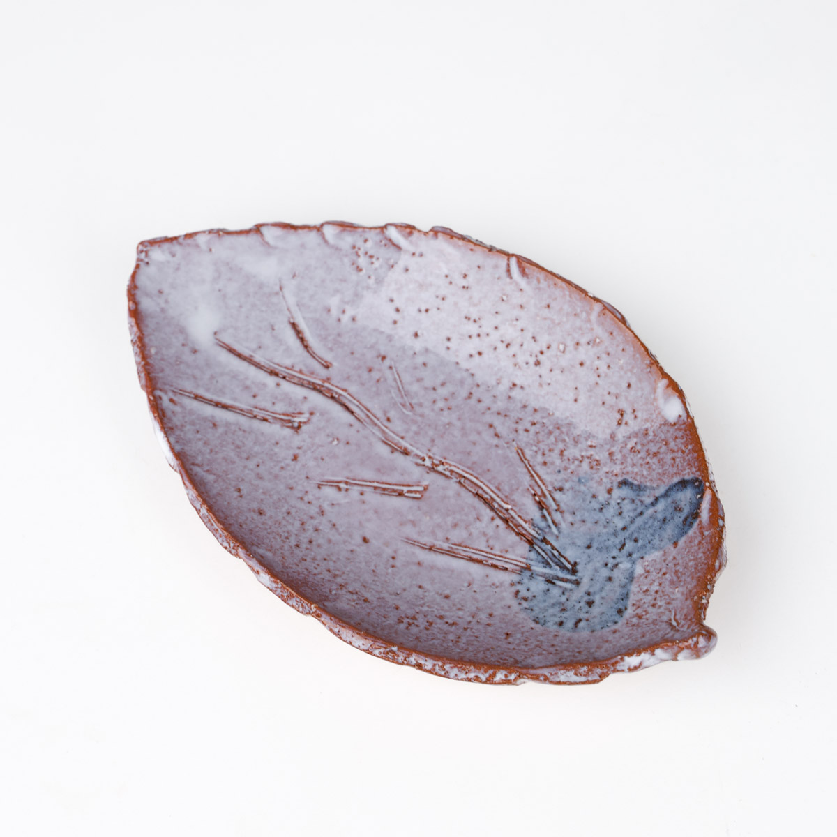 Japansk handgjord tallrik i form av ett blad. Vacker som dekoration eller som ett litet uppläggningsfat. Av japanska keramikern Deishi Shibuya.