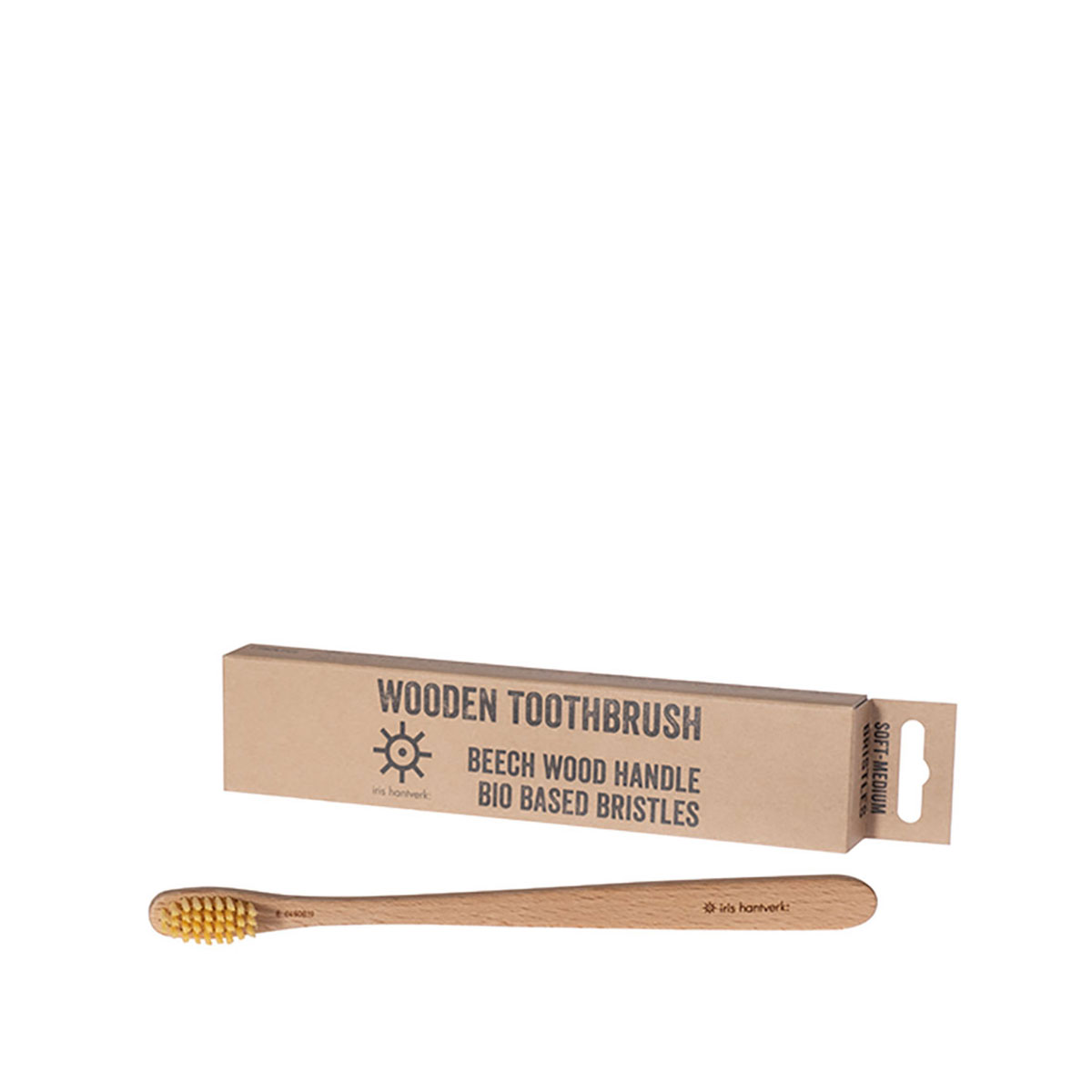 Miljövänlig tandborste i biobaserat syntetborst gjord av ricinolja och Karnaubavaxad bok.