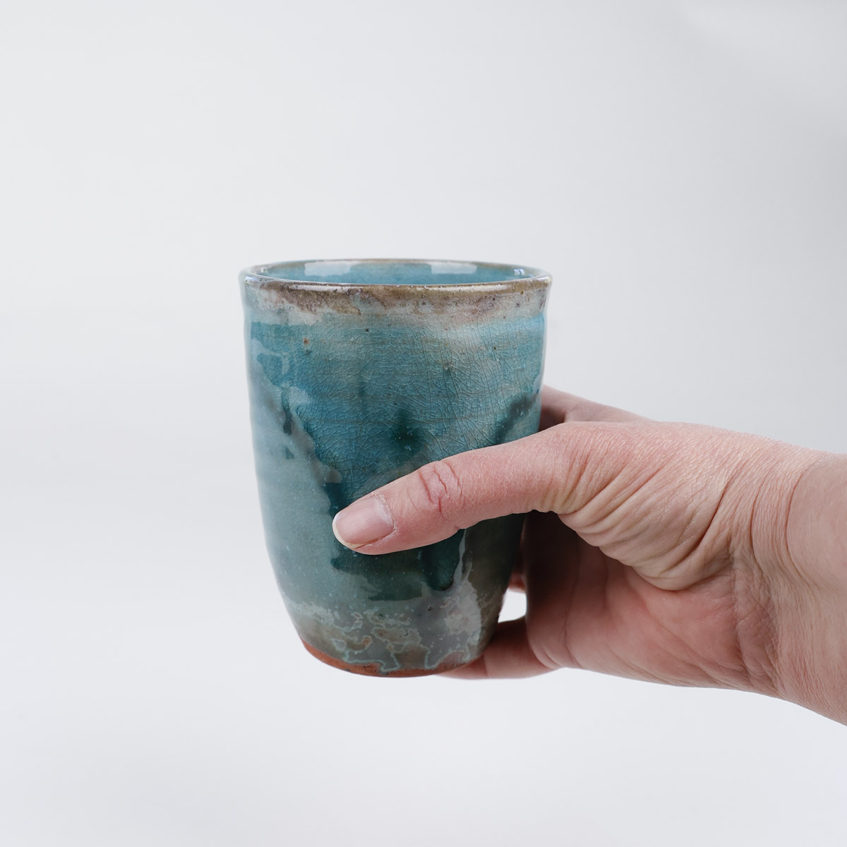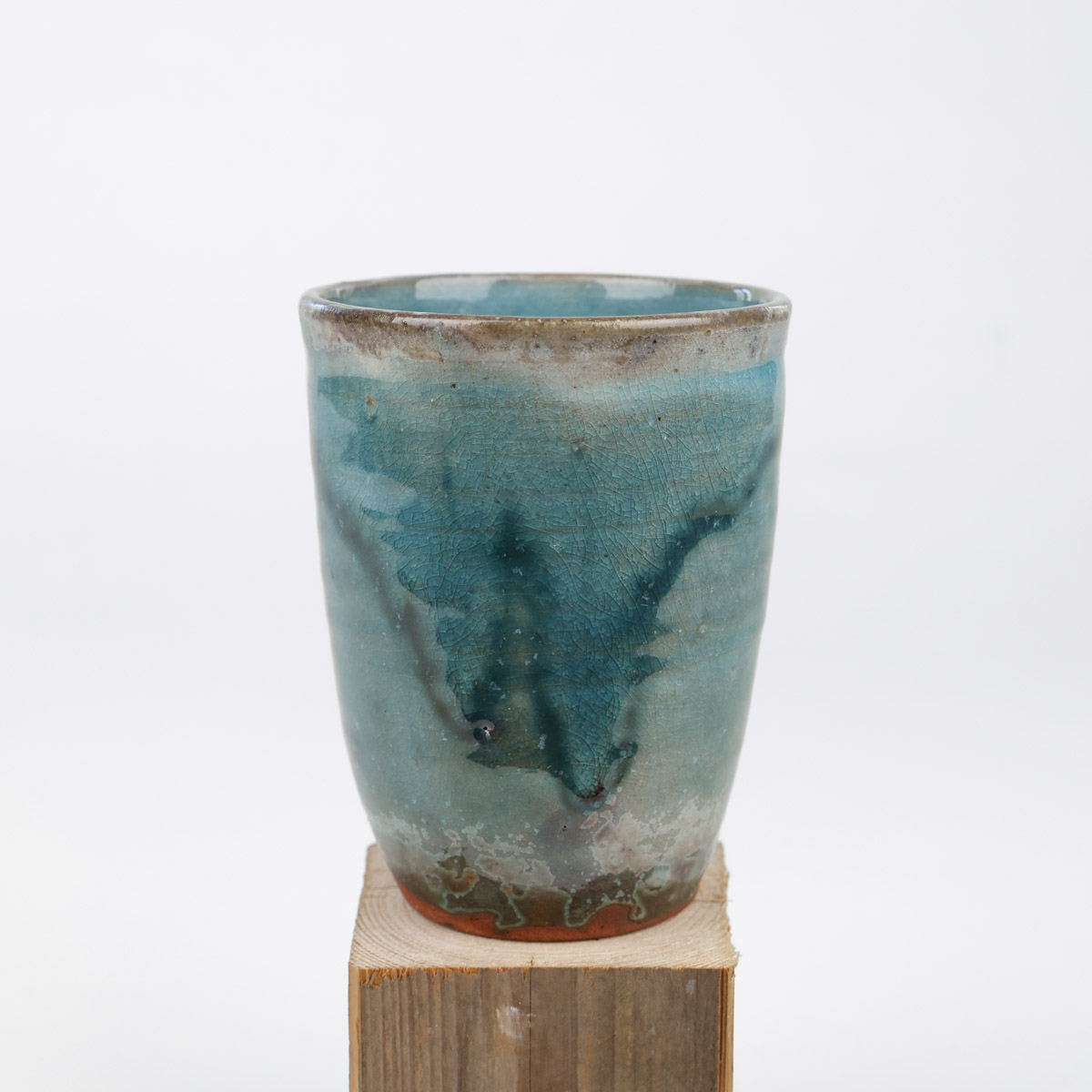 Japansk handgjord tekopp i en högre modell. Av japanska keramikern Seigan Yamane.