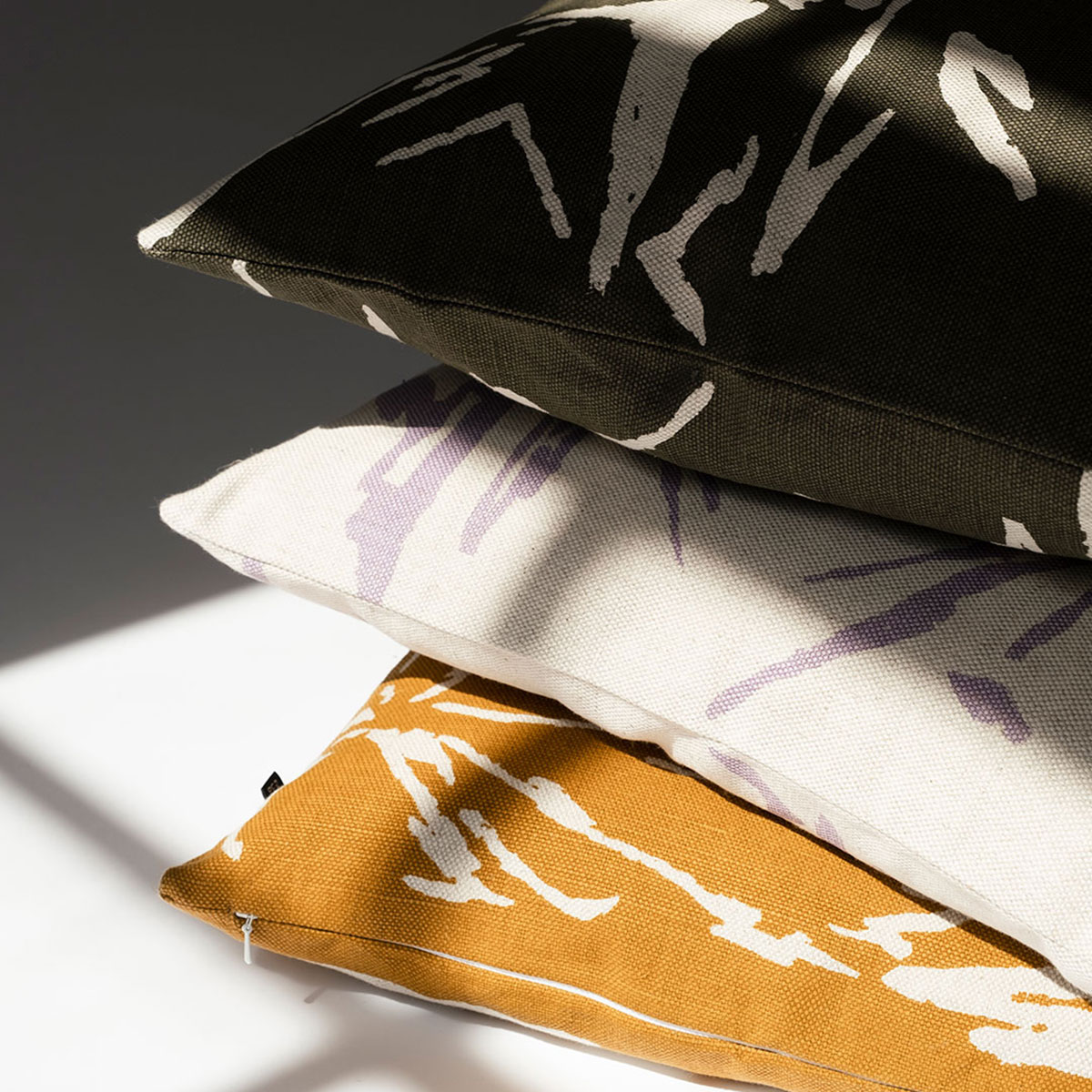 Kuddfodral i en härligt mjuk och tjock linnekvalité med ett expressivt och explosivt mönster av Unni Toivola.